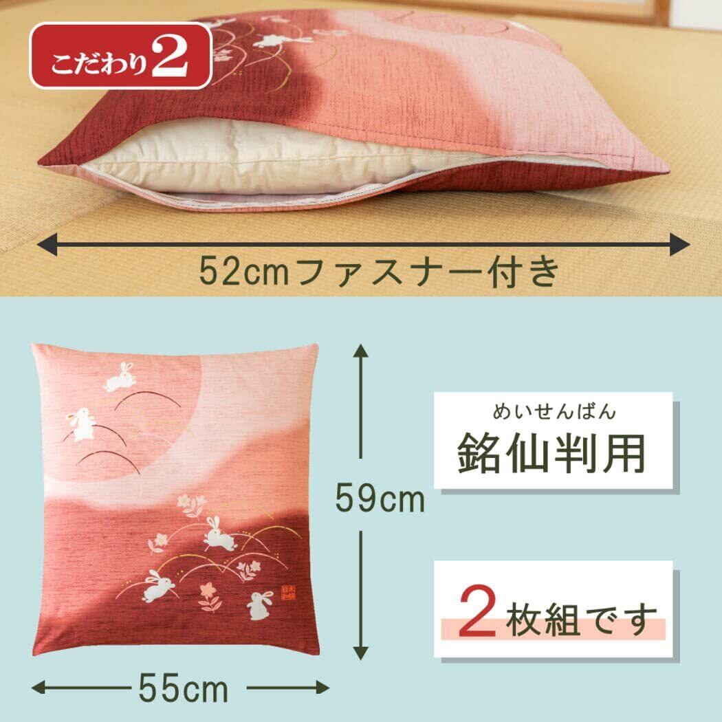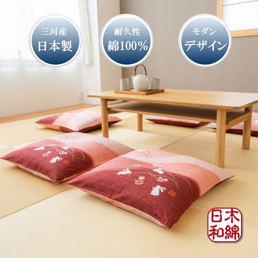 HAPPY SINGU RABO 【 日本製 】 座布団カバー 綿100% 【跳ねうさぎ】 【物事がとんとん拍子に進むと伝わる縁起の良い柄】 ざぶとん カバー 三河産 和室 洋室 来客用 普段使い 業務用 飲食店 業務用 公民館 集会所 来客用 法事 会議室 (エンジ 2枚組)