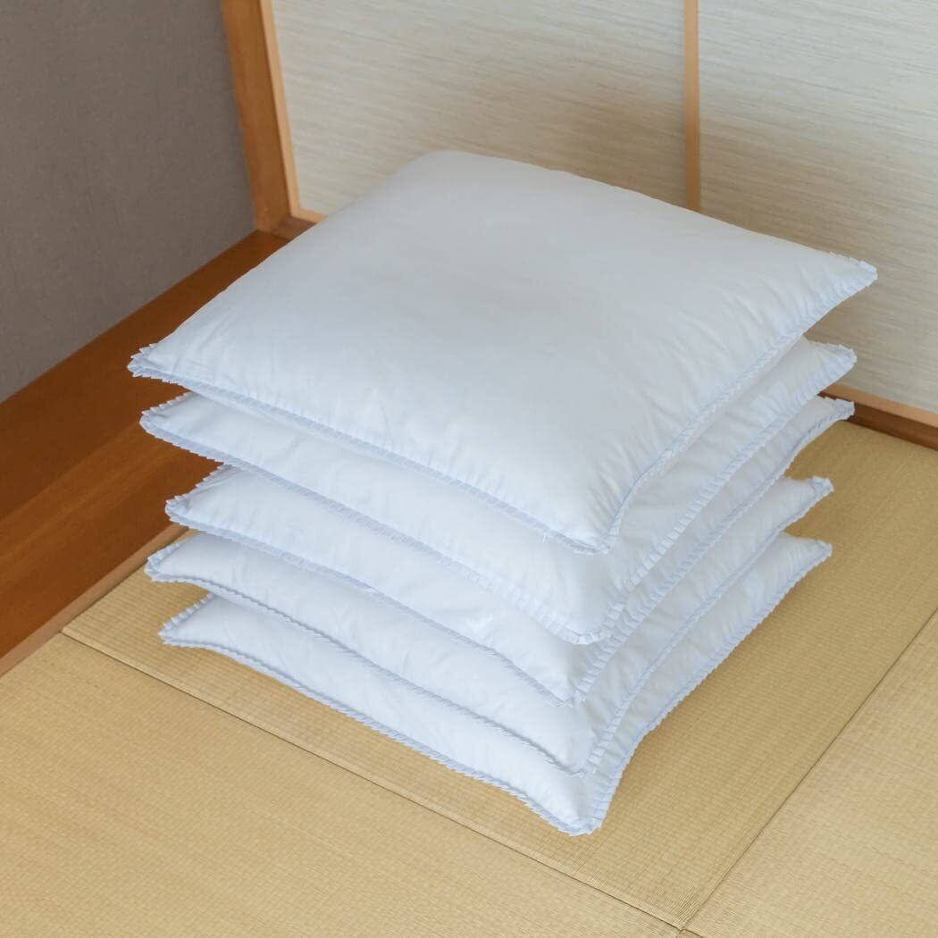 \【◆日本製 座布団カバー 5枚組 白 フリル付 186本打ち込み生地 ノーアイロン ざぶとん カバー 三河産 業務用 飲食店 公民館 集会所 来客用 法事 会議室 銘仙判 55cm×59cm◆】/