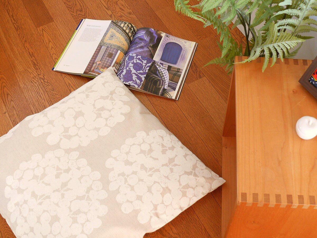 \【◆クォーターリポート 岡理恵子デザイン 綿麻素材 ざぶとん (座布団)カバー フロート アイボリー 約55×59cm 銘仙判 花柄 植物柄【日本製】◆】/