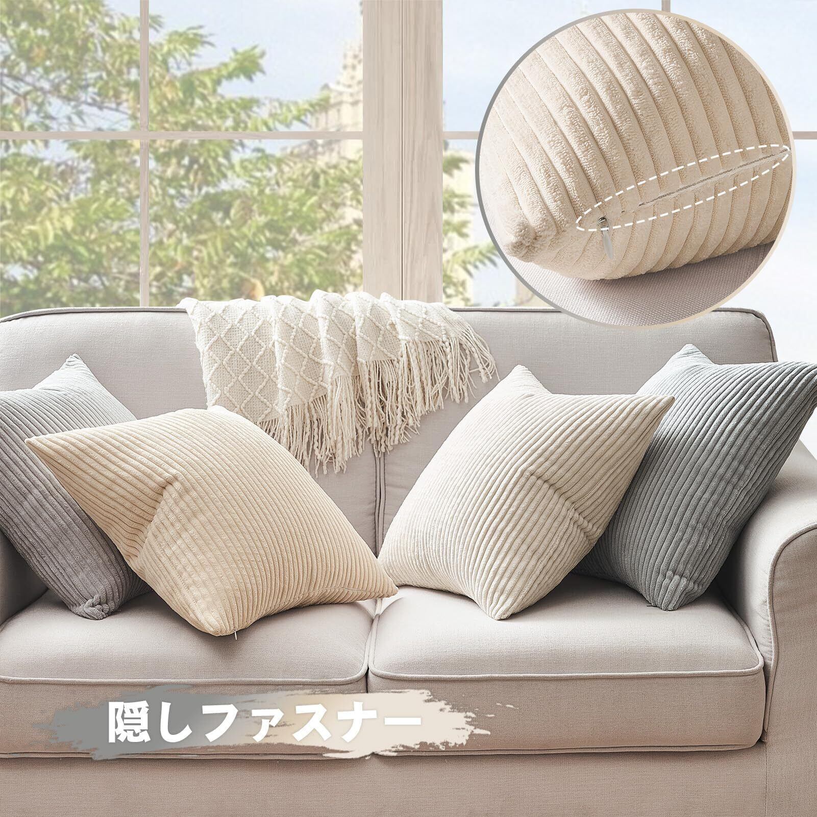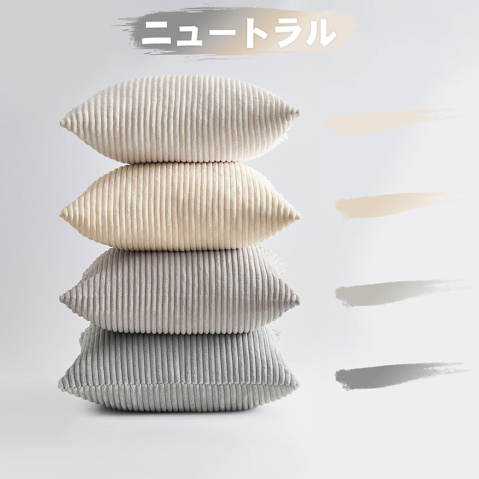 Topfinel クッションカバー 60×60cm 4枚セット コーデュロイ グラデーション おしゃれ 北欧 洗える ふわふわ 隠れるファスナー ストライプ ソファー用背当て 装飾枕カバー ニュートラル