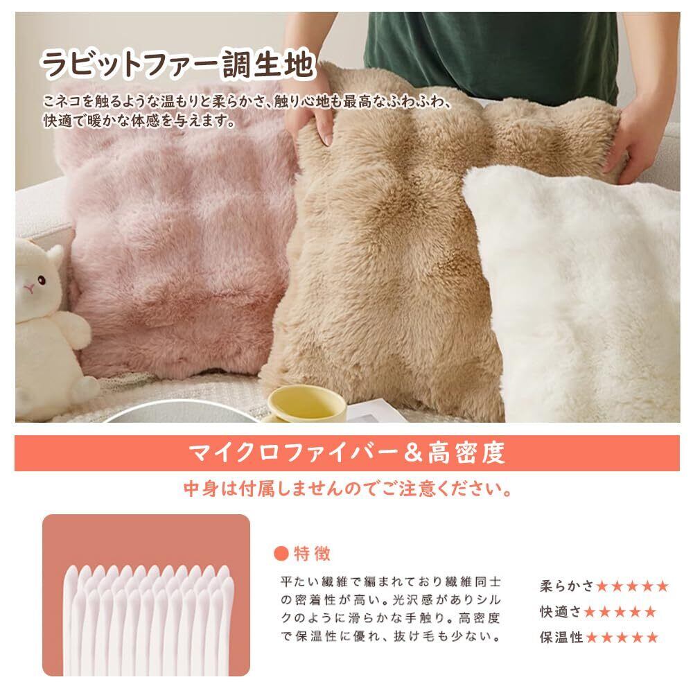 クッションカバー ラビットファー調 座布団カバー マイクロファイバー 45×45cm ファスナー式枕カバー おしゃれ 可愛い 秋冬 枕 厚手 もこもこ 暖かい 着脱簡単 肌に優しい 静電気防止 柔らかく ふわふわ 冷え対策 洗える 吸湿発熱 昼寝(ホワイト)