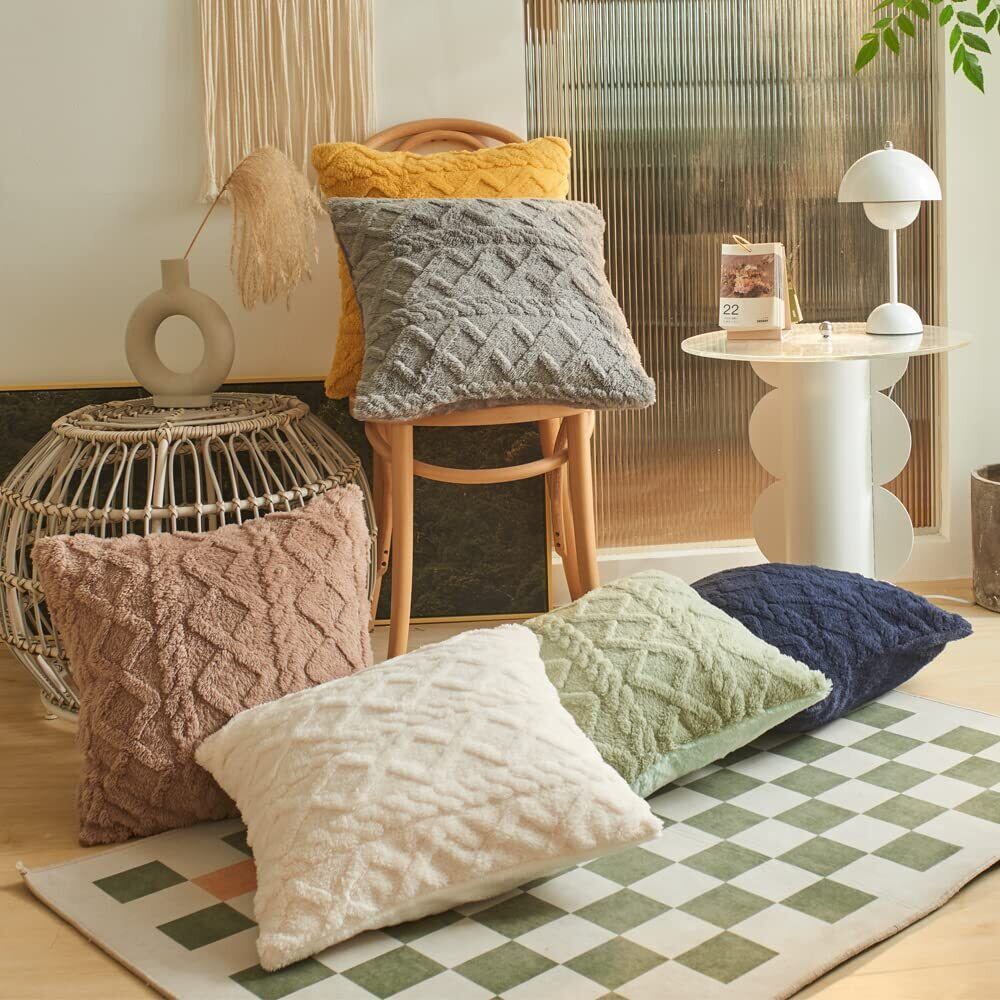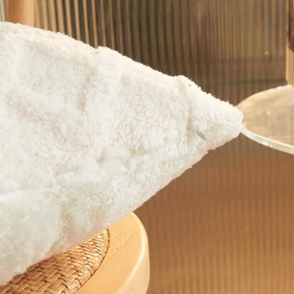 ✨【フェイクファー素材を使用しており、触れた瞬間に感じる柔らかさが絶妙です!】ふんわりとした感触が、リラックスしたい時に最適で、ソファやベッドでのくつろぎタイムをグレードアップします。