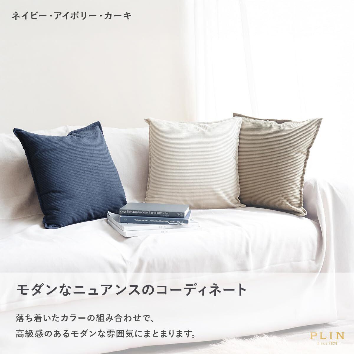 PLIN クッションカバー 50×50 おしゃれ かわいい 北欧 シンプル 丸洗い 無地 柔らか 肌触り コーデュロイ 簡単着脱 春 夏 秋 冬 50cm ダークグレー