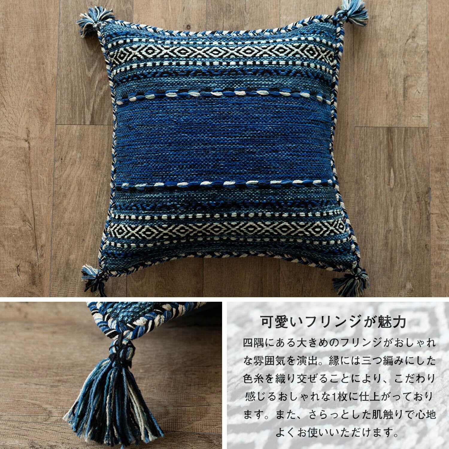 サヤンサヤン クッションカバー 手織り インド キリム 45x45 ブルー エスニック アジアン 綿