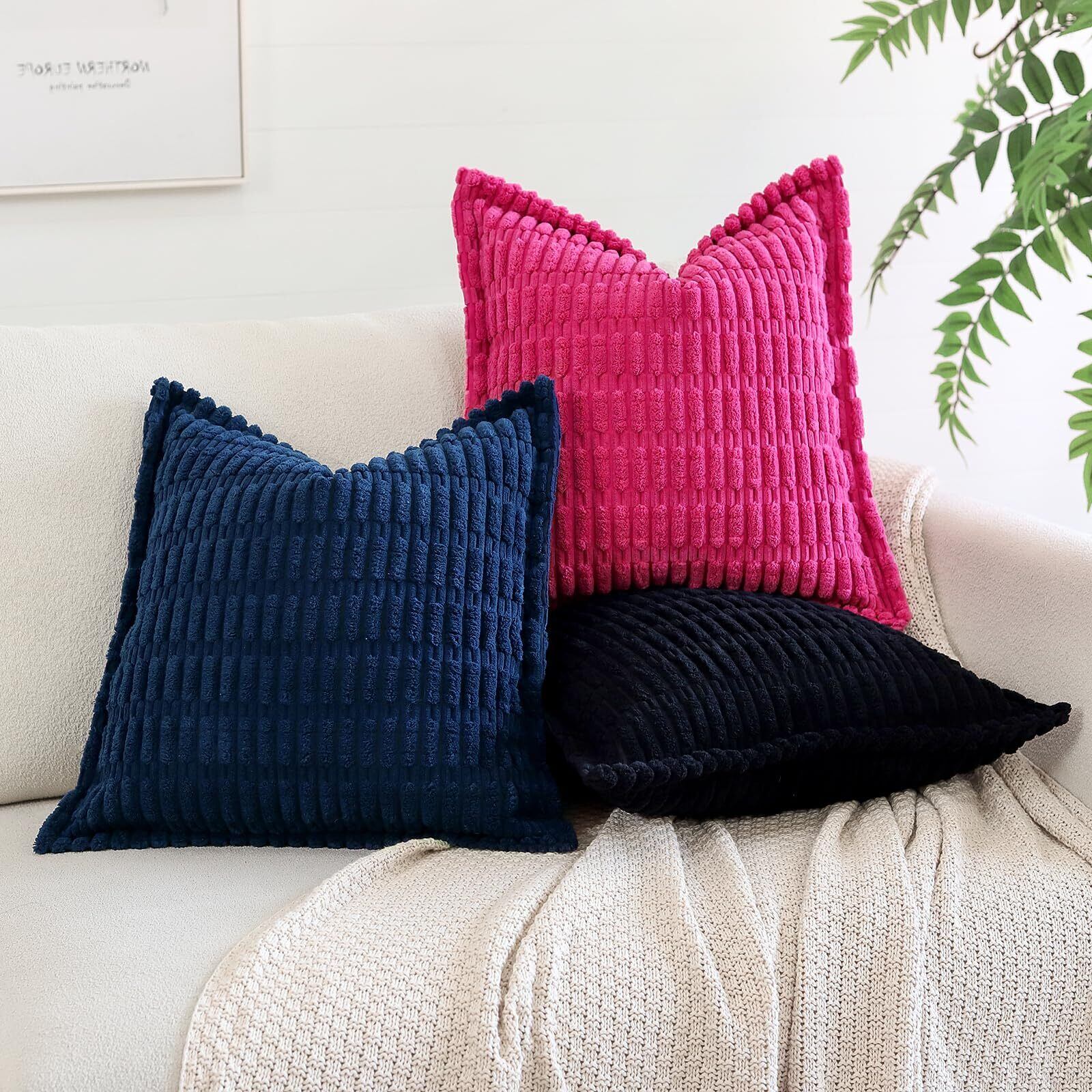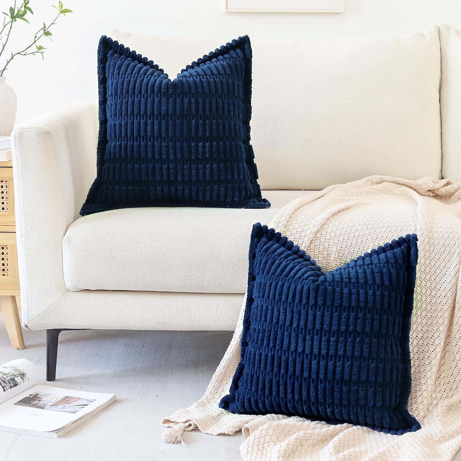 Otostar クッションカバー 北欧 2枚セット 麦の穂 コーデュロイ おしゃれ 可愛い モダン ファスナー インテリア 装飾用ピローカバー 座布団カバー (45x45cm, 紺色)