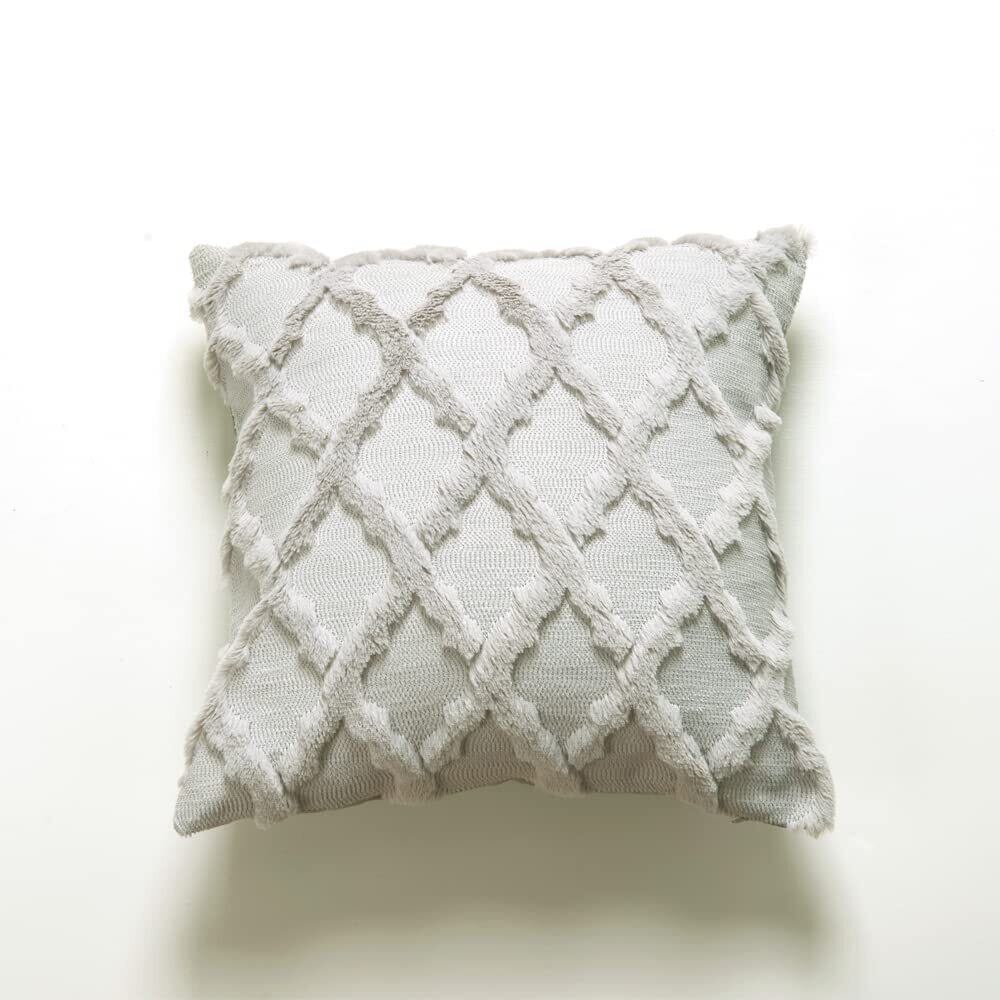 ✨【この『クッションカバー』は、北欧スタイルが魅力のフェイクファーとベルベット素材を使用したおしゃれなアイテムです!】サイズは45×45cmで、ライトグレーの幾何学模様が特徴。どんなインテリアにも馴染み、お部屋に柔らかい印象を与えてくれます。