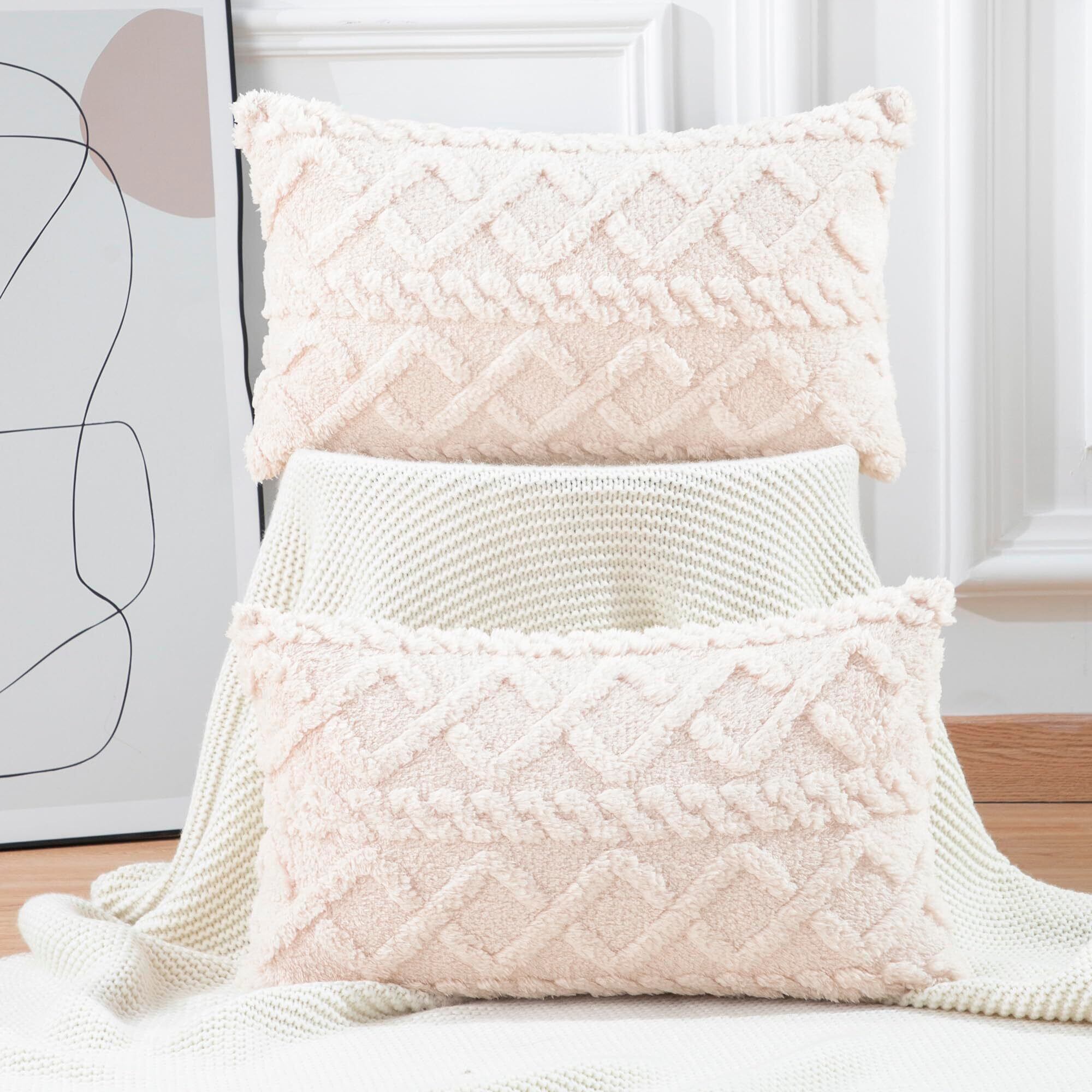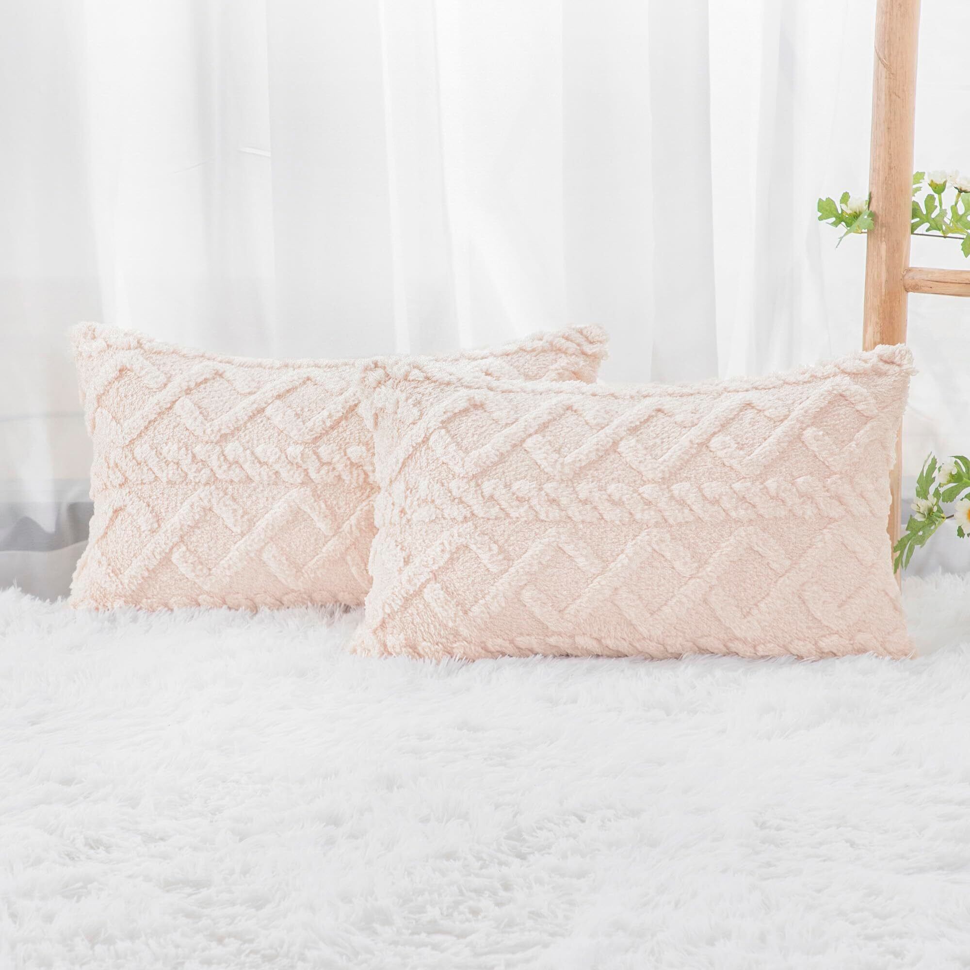 Madizz クッションカバー 2枚セット 30×50cm ベージュ 北欧 柔らかい 短いウール フリース 背当て 装飾 枕カバー 座布団カバー ソファ用 寝室用