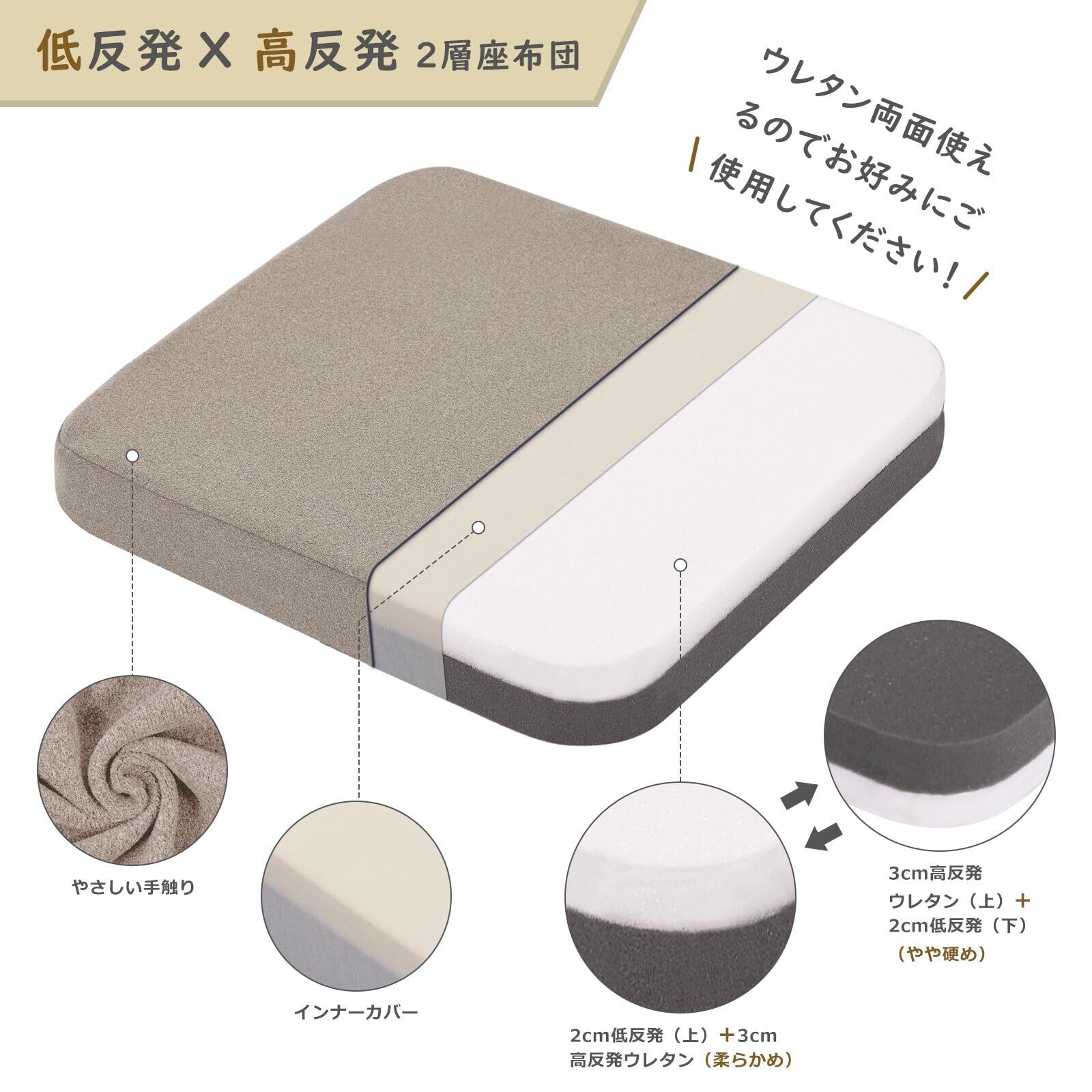 座布団 椅子 クッション 低反発+高反発 クッション 40×40×5cm 2層構造 モカブラウン カバー洗える