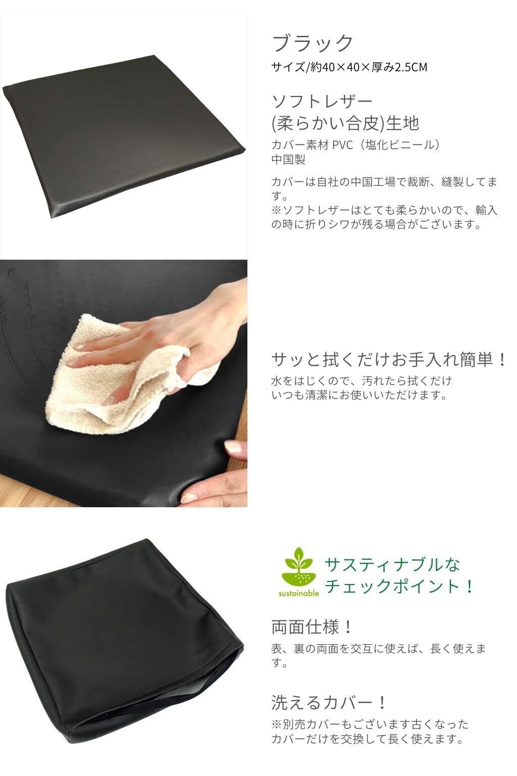 金鵄 レザークッション 日本製ウレタン 高反発 座布団 コラム 40x40x2.5 (ブラック, 10)