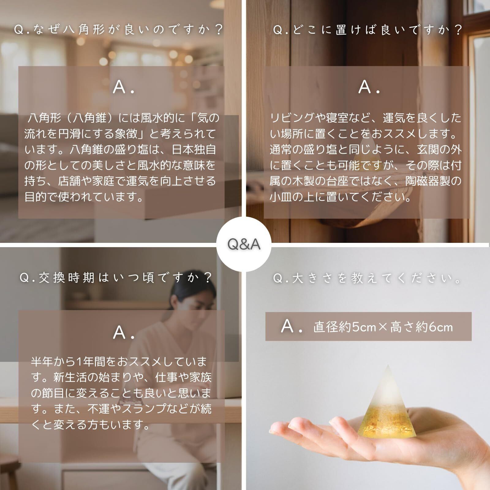 ✨【交換不要の仕様で、手軽に使用できる盛り塩セットです!】玄関やリビングなど、置きたい場所にそのまま設置するだけで、運気の向上を図ることができます。