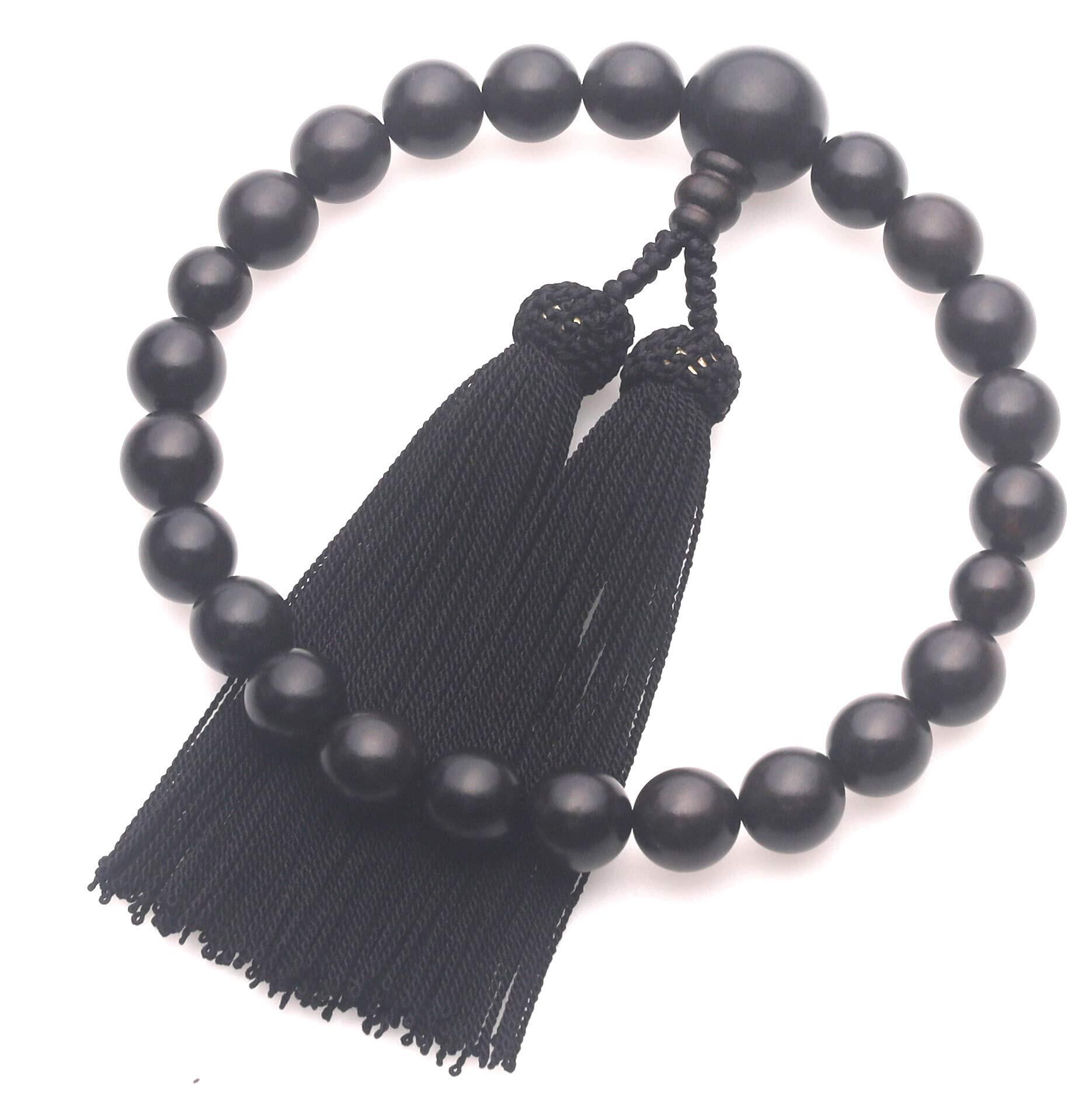 【程度よく重み&サイズ】重みがあり、手触りもよく、男性が手にするのにぴったりサイズです。主玉:縞黒檀(艶消)12mm、天玉:縞黒檀(艶消)10mm、親玉:縞黒檀(艶消)18mmとなります。房色(黒色)。