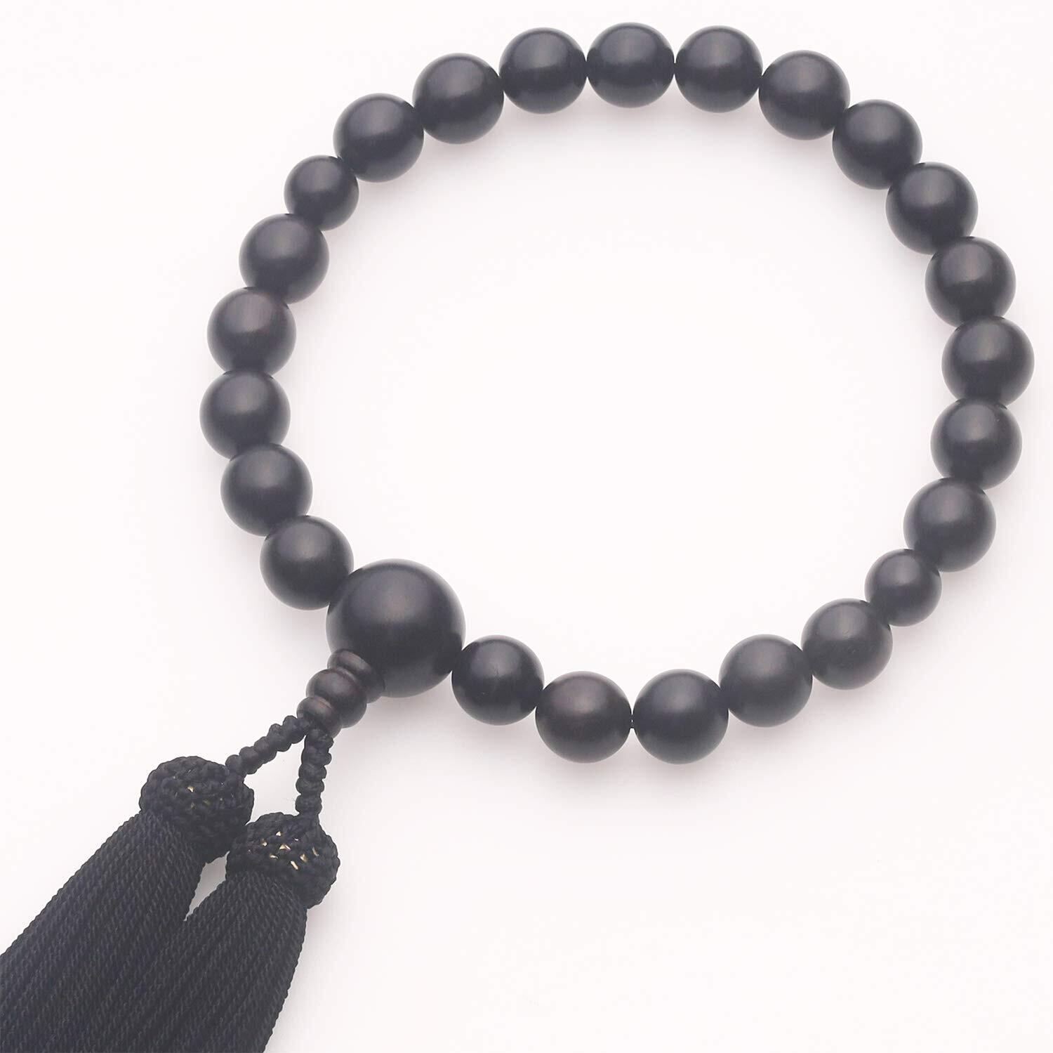 LEOBEE 数珠 男性用 縞黒檀(艶消) マグネット式数珠袋付き 全ての宗派でお使い頂けます