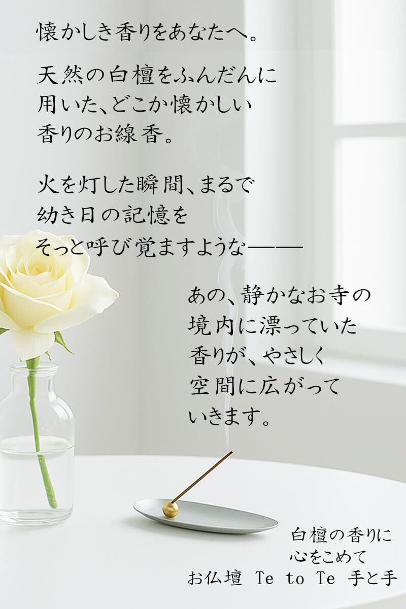✨【本白檀の豊かな香りは、空間を洗練された雰囲気で包み込みます!】和の心を大切にするあなたに贈る、優雅で落ち着いた香りです。