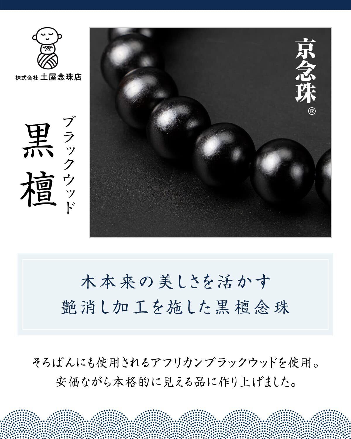 福正堂 数珠 【葬祭プロの監修 京都伝統工芸品】 念珠 男性用 葬儀 葬式 冠婚葬祭マナーBOOK付 黒壇 艶消し+数珠袋(萩 紺)