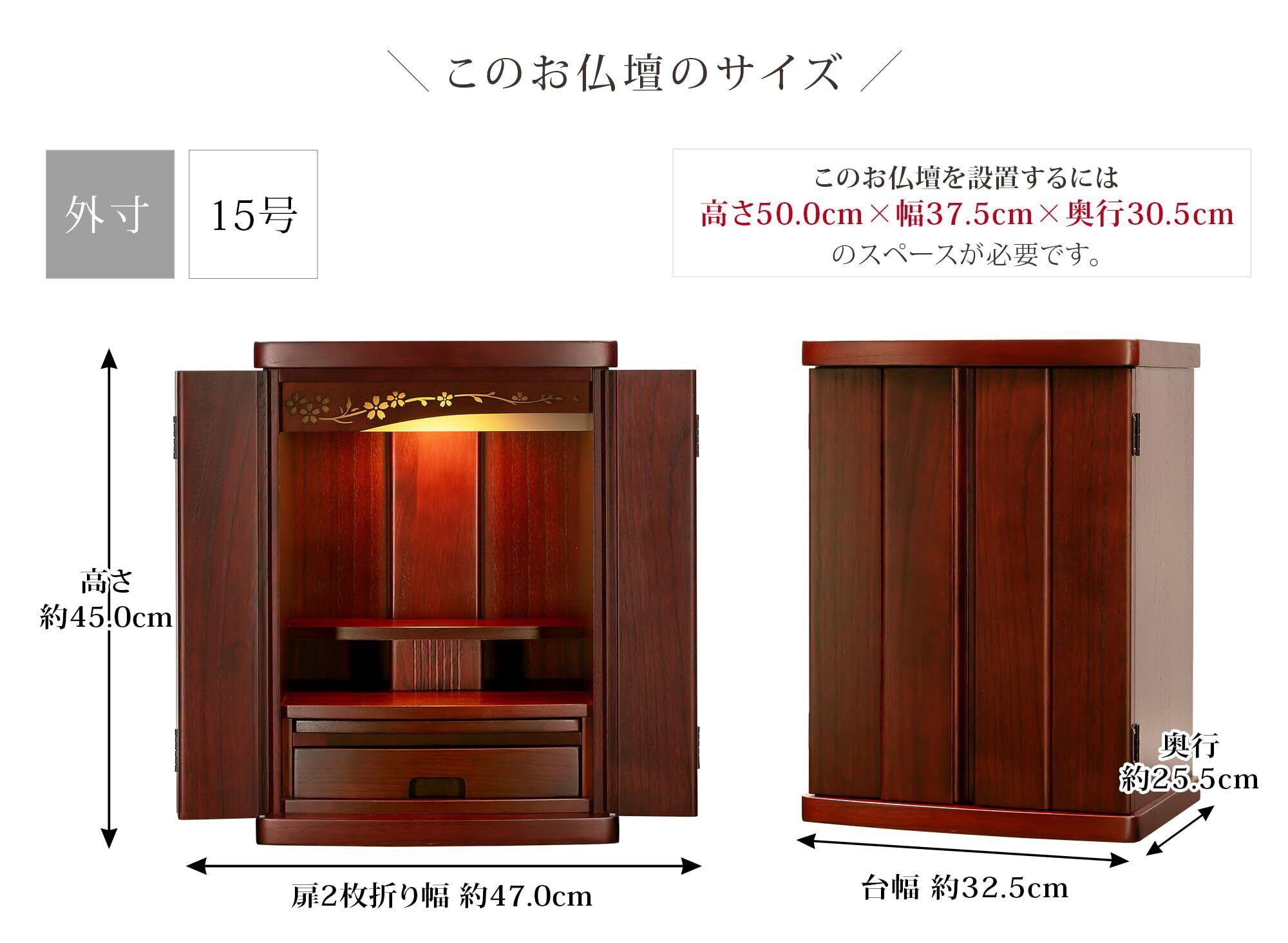 仏壇 ミニ モダン 【高級桐無垢材採用】 ミニ仏壇 家具調 15号 紫檀色 高さ45cm 幅32.5cm 奥行25.5cm 北欧風 上置仏壇 小型仏壇 コンパクト リビング マンション 華蓮 ライトブラウン ウォールナット ミドルブラウン ホワイト