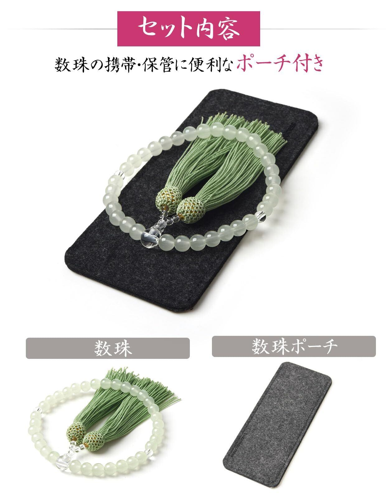 \【◆EsuonHappiness 数珠 女性用 8mm 頭房 硝子 略式数珠 すべての宗派で使える 選べるお色 法事 葬儀 数珠袋付き 天然石色 人絹房 (グリーンオニキス色)◆】/