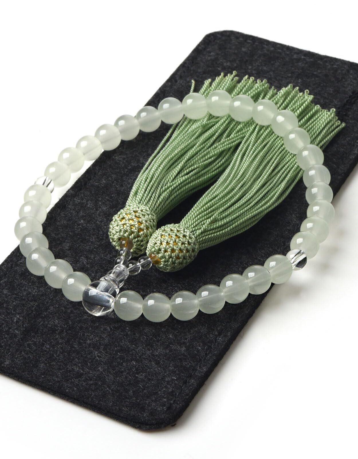 【EsuonHappiness】数珠 女性用 8mm 頭房 硝子 略式数珠 すべての宗派で使える 選べるお色 法事 葬儀 数珠袋付き 天然石色 人絹房 (グリーンオニキス色)
