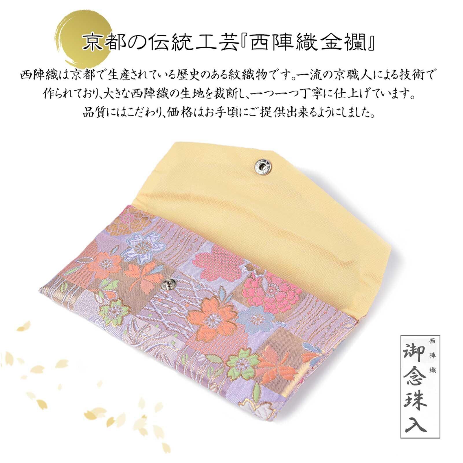 数珠入れ 数珠袋 西陣織 金襴 8種類 女性用 念珠袋 念珠入れ 西陣 日本製 京都 角形数珠袋,格子藤