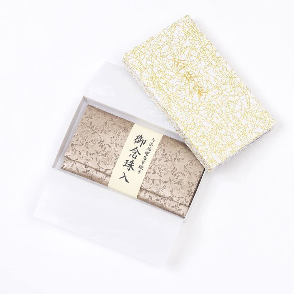 念珠袋 数珠袋 数珠入 念珠入 二つ折り 男女兼用 京緞子 紙箱入 ギフト 日本製/花柄 フラワー 曙唐草 ブラウン 茶 白茶