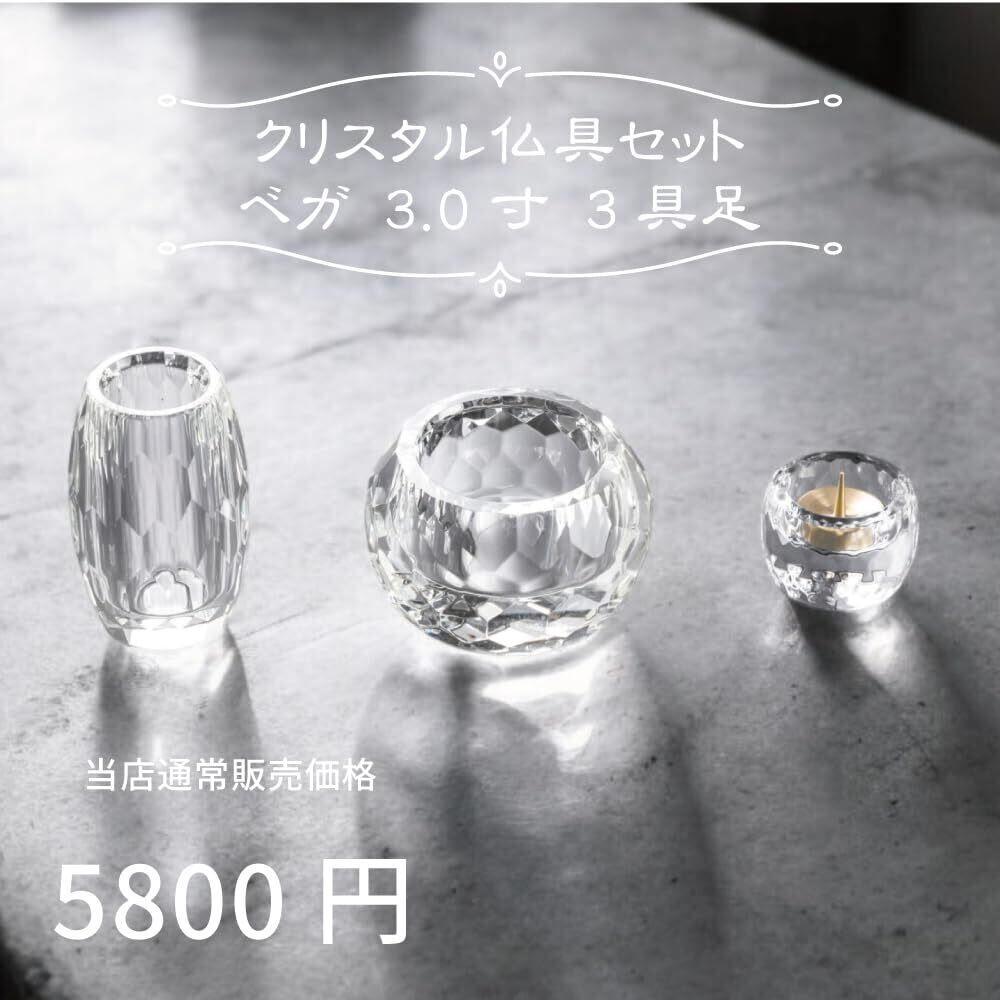 仏具 セット ベガ クリア 3具足 3.0寸 クリスタル仏具 モダン仏具 K7クリスタルガラス おしゃれ(K7) おしゃれ 香炉 花立 蝋燭立て