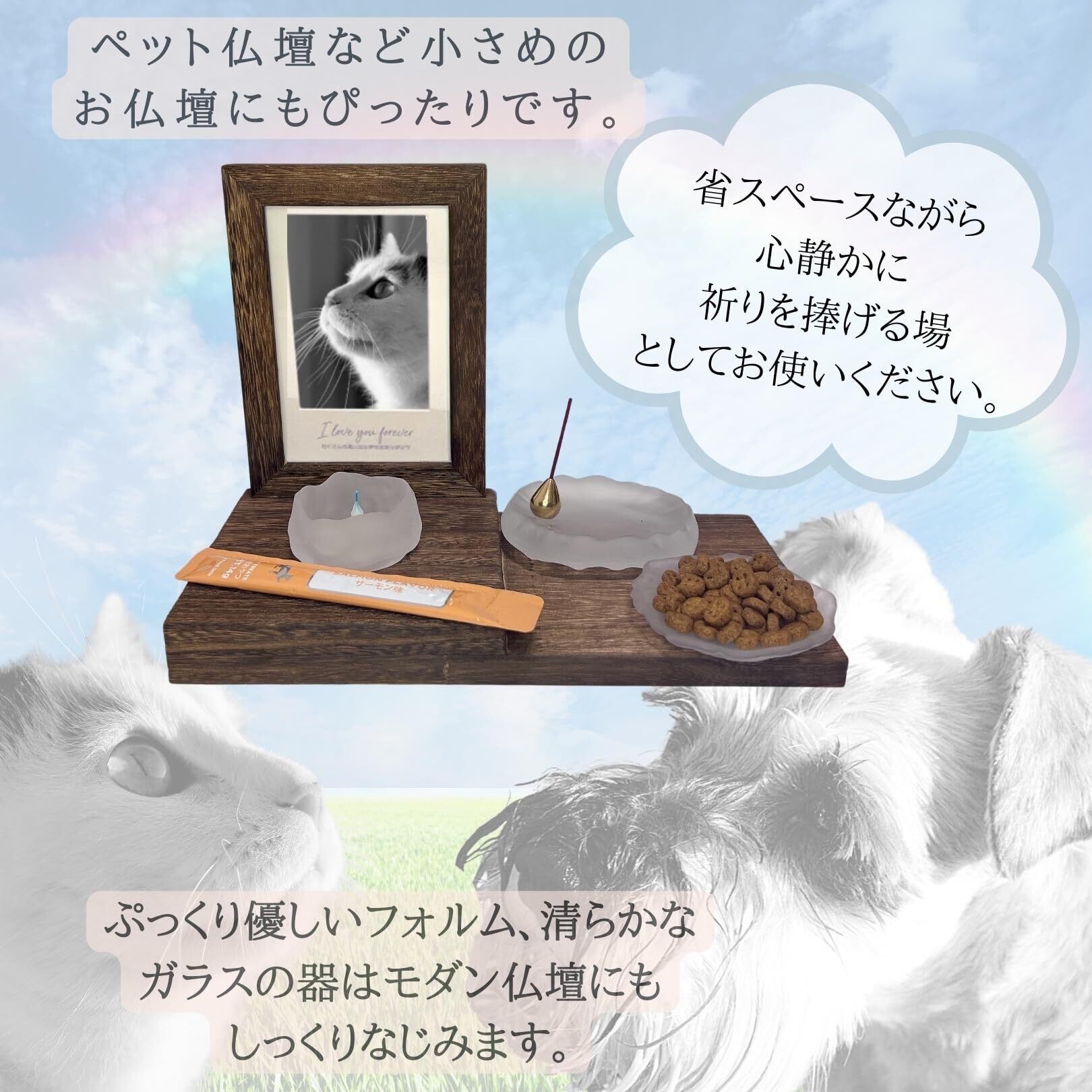 この『3world 仏具セット お供え お焼香 具足 モダン仏壇 ペット仏壇 SW2252』は、現代の供養スタイルを実現するために最適なアイテムです!ガラスの透明感が、特別な瞬間を一層引き立てます。