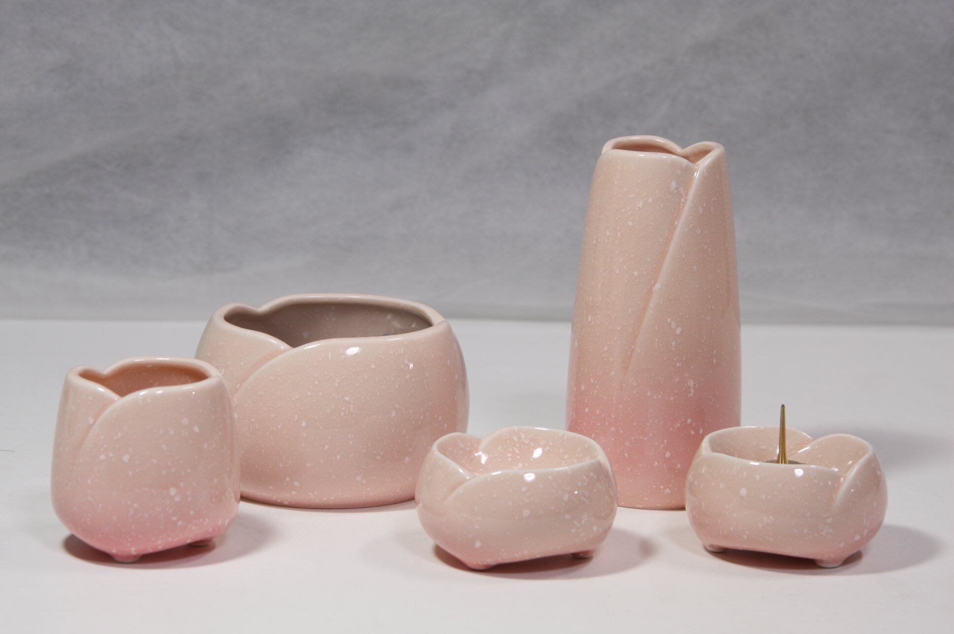 ✨【この『やわらぎ 佛具5点セット 中 さくら』は、優雅で温かみのあるデザインが特徴の仏具セットです!】桜色の色合いが、供養の空間に心地よい柔らかさを加えます。