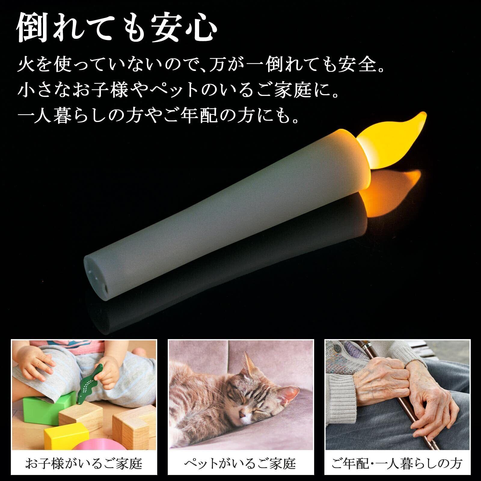 コモライフ(Comolife) 仏壇用のLEDろうそく 2本組 電気ろうそく 電池式 LED 仏壇用 ろうそく 仏具 火を使わない ワンタッチ 燭台付き 配線不要 ゆらぎ 仏壇 墓参り 法事 お盆 お彼岸 【連続点灯時間:約300時間】