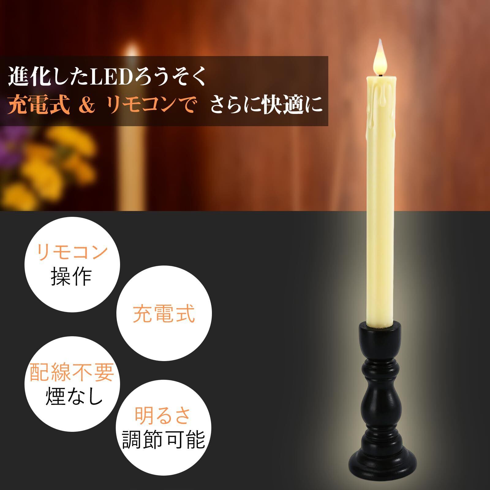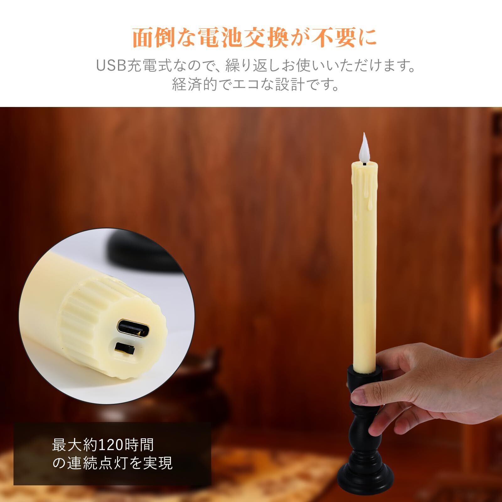 【リモコン操作&充電式で便利経済的】この電気ローソクはUSB充電式で、電池交換が不要。リモコンで簡単にオン/オフや調光操作ができ、さらに2・4・6・8時間のオフタイマー機能付き。満充電で最大約120時間点灯する充電式LEDローソクです。