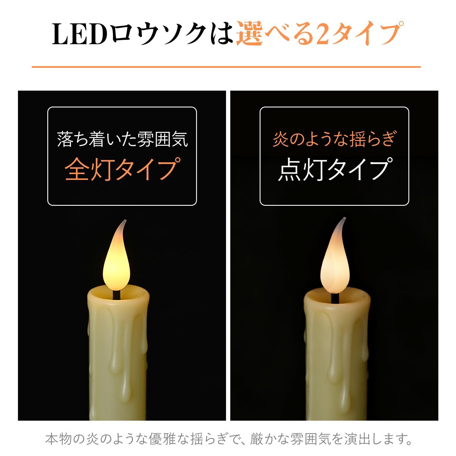 【2光モードで選べる本物らしさ】「通常点灯モード」と「炎揺らめきモード」の2種類を搭載。お好みやシーンに合わせ、本物のロウソクのような雰囲気をお楽しみいただけます。理想の灯りを再現する、多機能LEDローソクです。