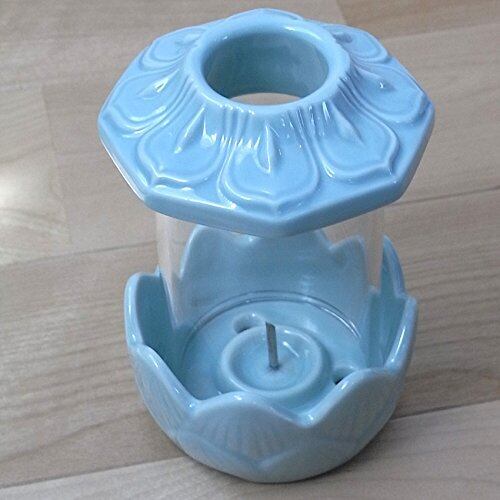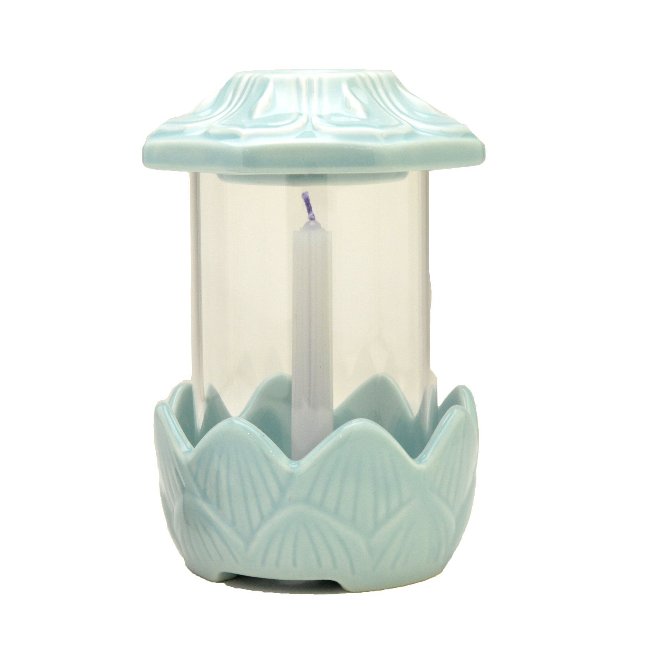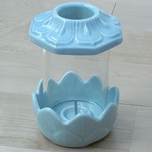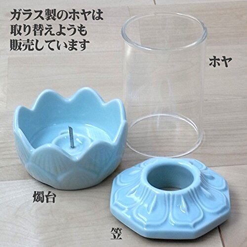 ロウソク立て (小) お墓用 (屋外でも消えにくい) ガラスホヤ仕様 青磁 光明燈 (非常用 災害用)