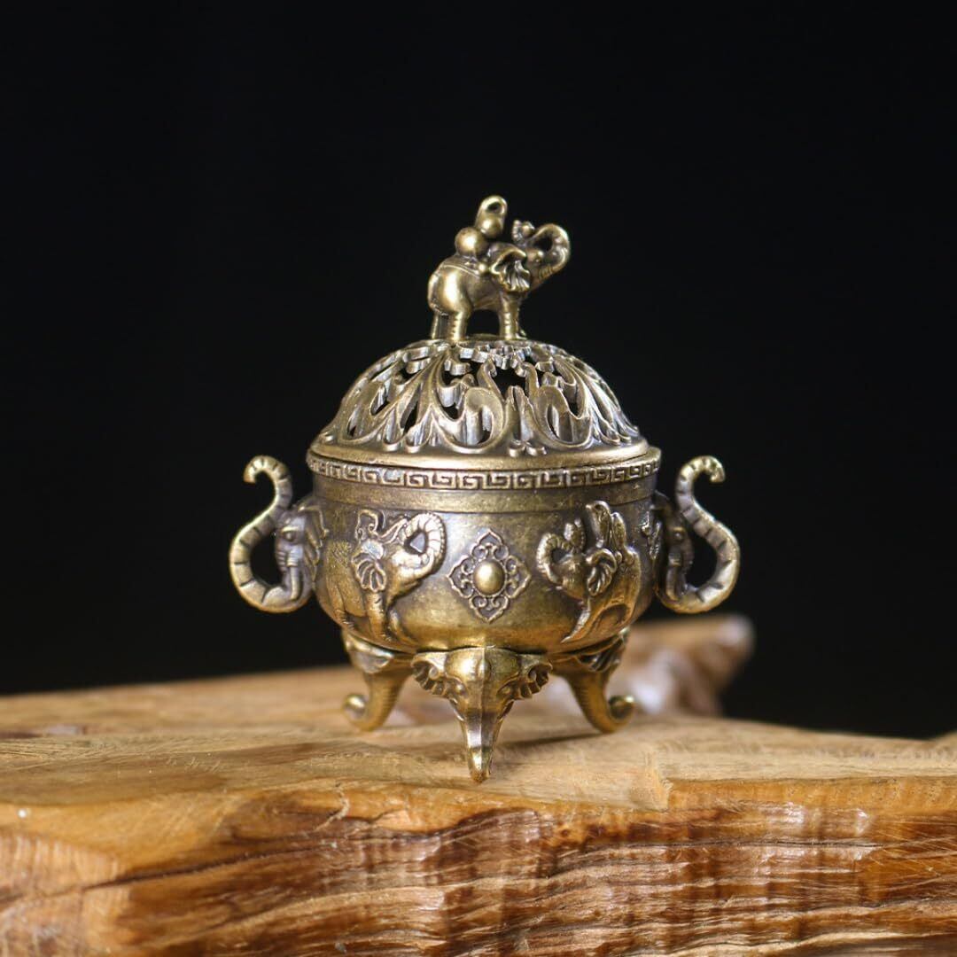 精巧な細工: アンティーク調の合金製香炉で、象のモチーフと伝統的な装飾パターンが施された優美なデザイン、お部屋のインテリアとしても映えます。