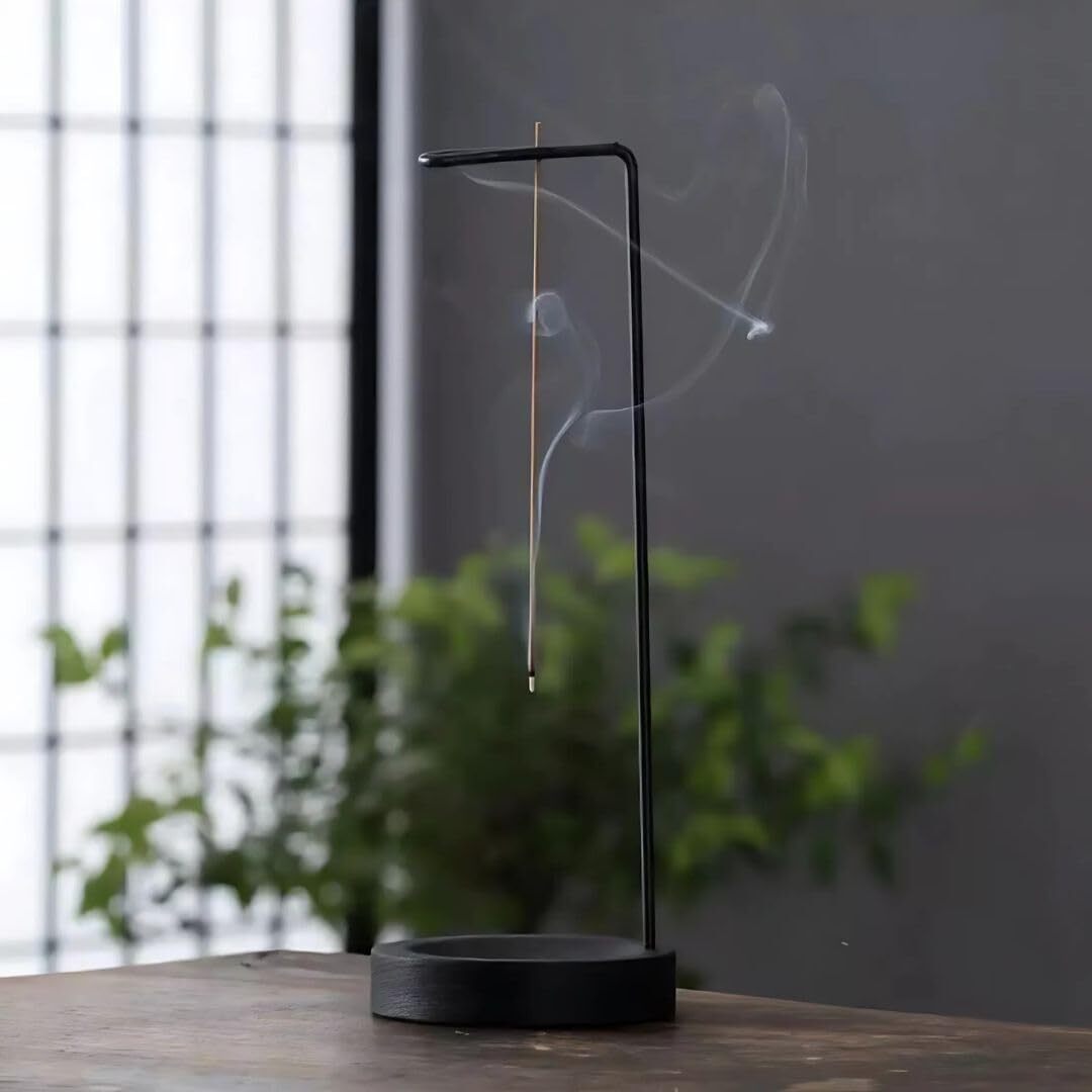香炉ホルダー お香吊るし お香立て お香入れ おこうスタンド お香ホルダー お香たて おしゃれ線香立て 灰がこぼれない (黒-黒)