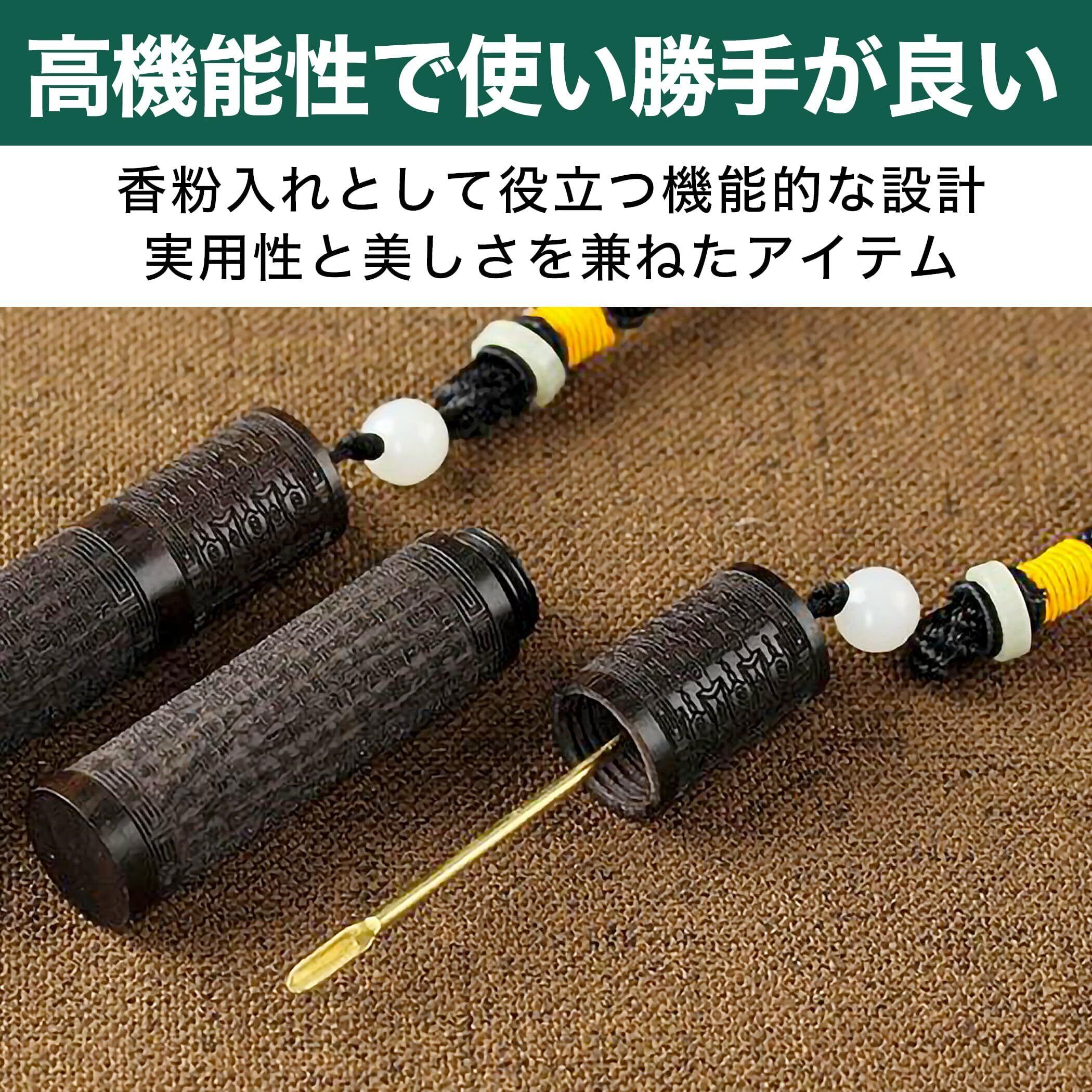 機能性が高く使い勝手が良い:フタの内側に薬さじがセットされているため、必要な量をスムーズに取り出すことができます。内径約1.1cmの収納スペースが使い勝手の良さを実現しており、香粉入れとして役立つ機能的な設計です。実用性と美しさを兼ねた商品です。