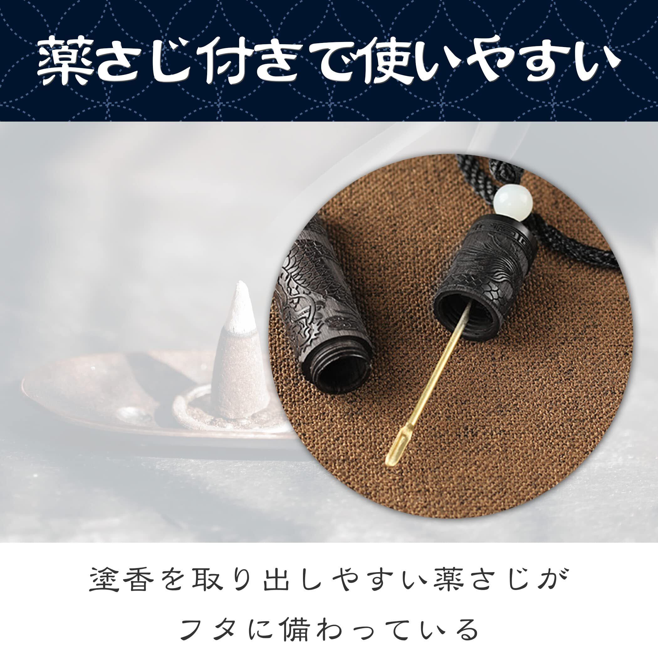 ✨【付属の薬さじがあるため、お香を簡単にすくって移動できます!】お香をこぼさず、スマートに使えるのが嬉しいポイントです。お出かけ先でも、手軽に香りを楽しむことができます。