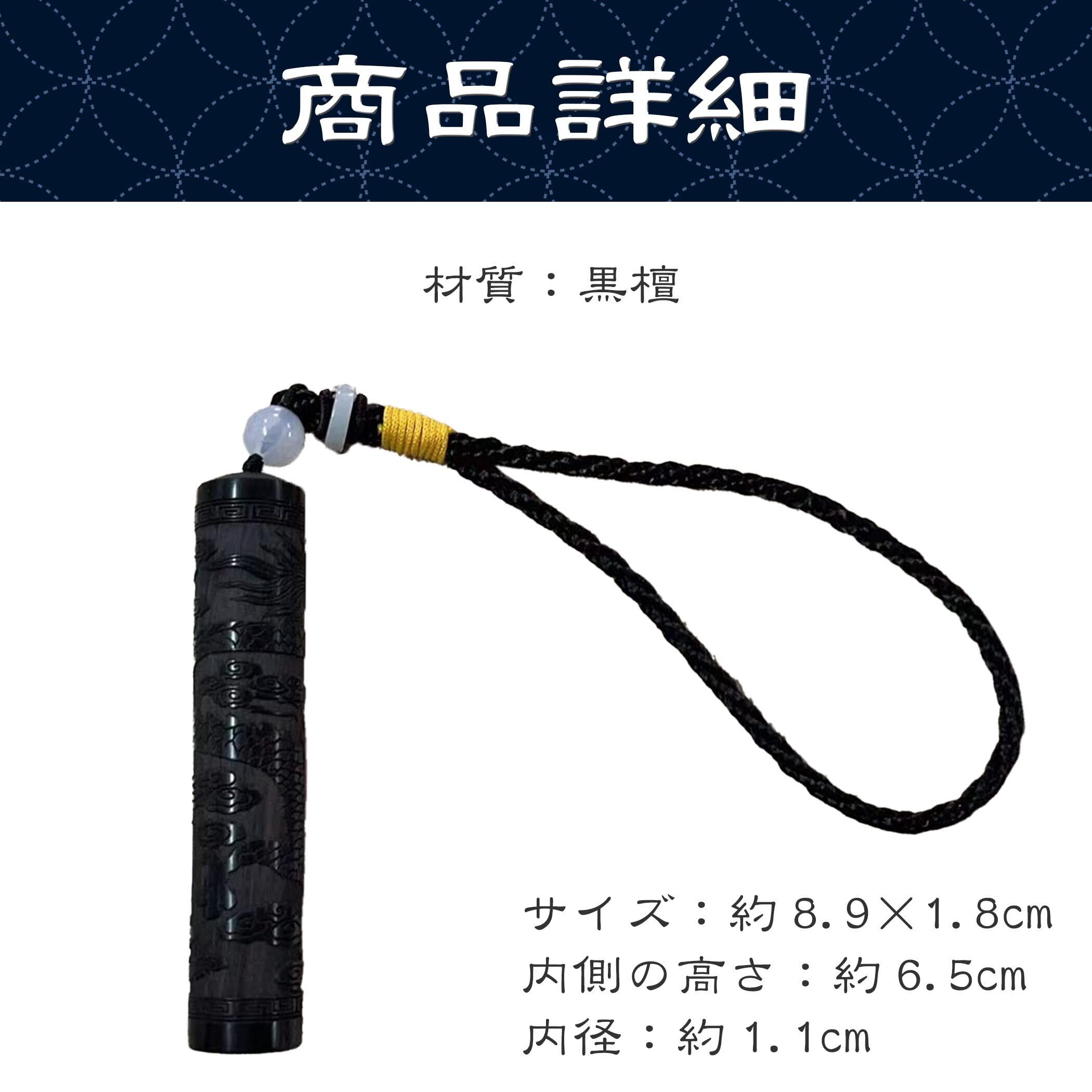 サイズ:約8.9×1.8cm 内側の高さ:約6.5cm 内径:約1.1cm 材質:黒檀 ※モニターの環境等により色の見え方に若干差が生じる場合がございます。