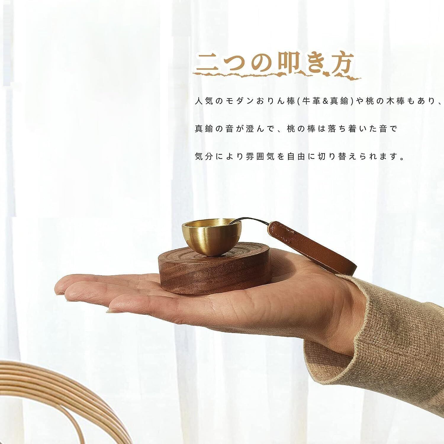 ✨【このおりんは、真鍮製で、高級なウォールナット、天然木、牛革を使用したこだわりの逸品です!】華やかさと耐久性を兼ね備え、末永くご利用いただけます。