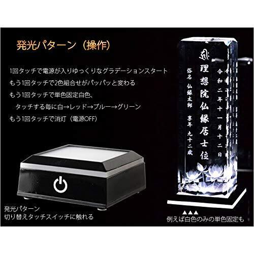 ✨【この台座は、LED光源を使用しており、様々な色合いに変化するレインボーの光が特徴です!】位牌を引き立てる美しい演出が、供養のひとときをより特別なものにします。