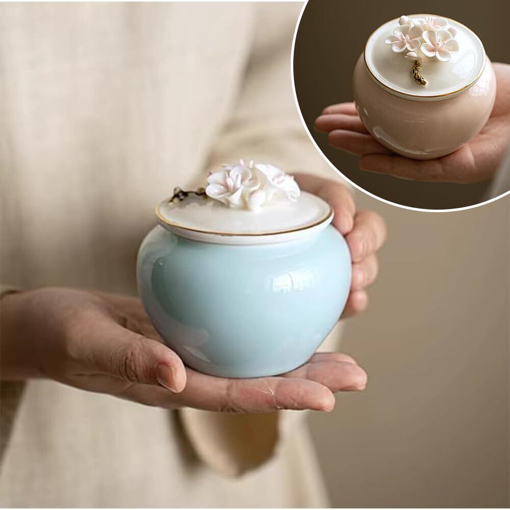 この絶妙で美しい小さな骨壺は、蓋に模造の花びらが付いており、とても美しいです。この小さな記念品は、愛する人や友人との貴重な思い出を美しい方法で保存することもできます。
