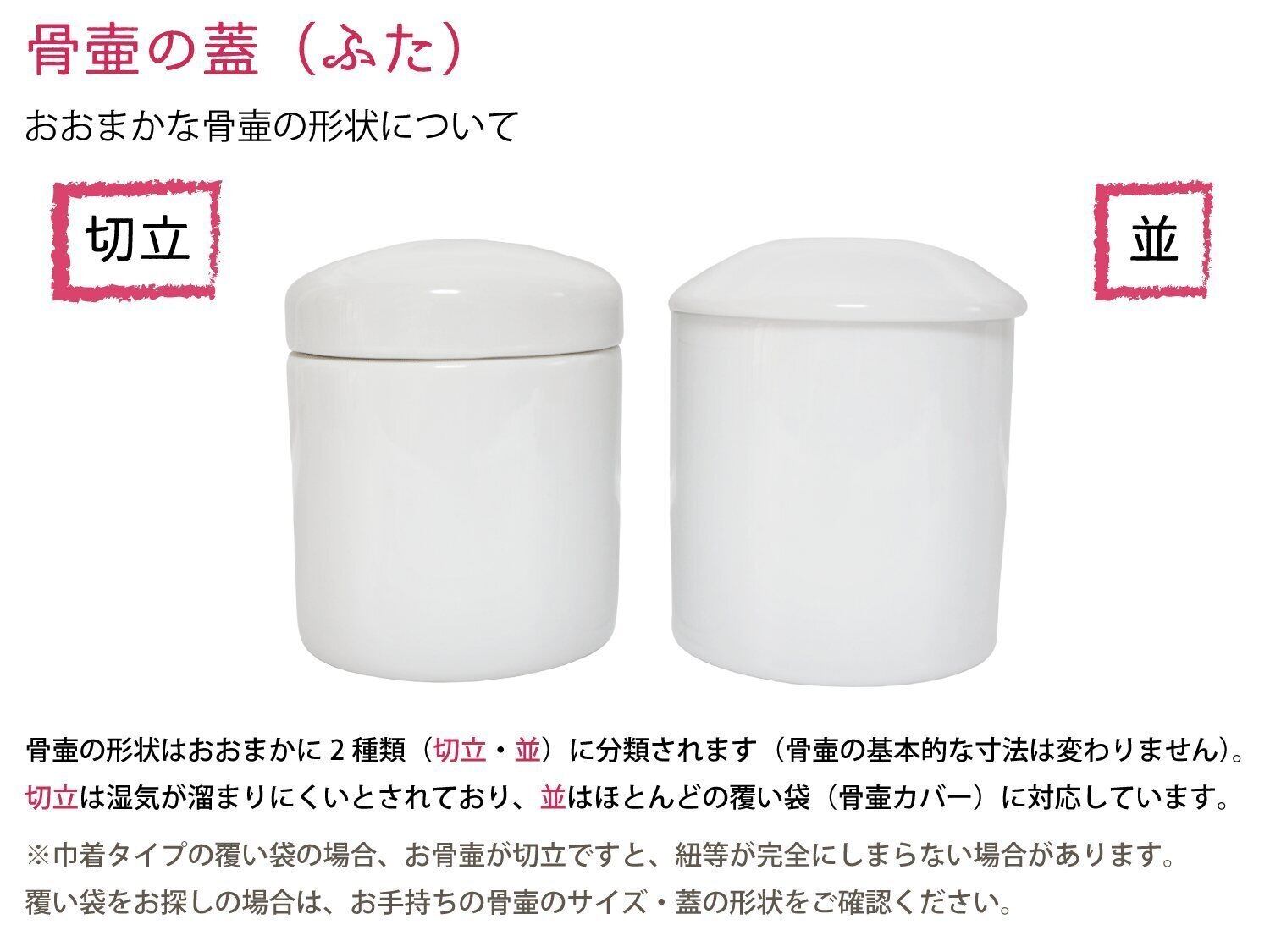なお、お勧めの骨壷は画像で載せております白並骨壷です。それ以外の形の骨壷ですと、収められない可能性がございますのでくれぐれもご注意くださいませ。 ご不明な点がございましたら、ご連絡ください。