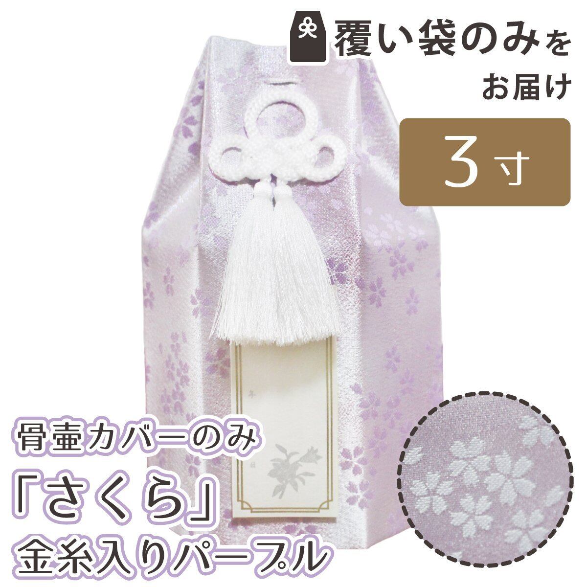 覆い袋のみ 骨壷 3寸 金糸 さくら パープル