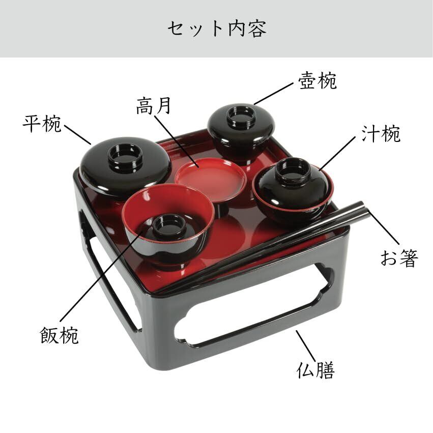 サンメニー 本格 仏膳 5.5寸 仏壇用 山中漆器 日本製 お霊供膳 お供え膳 セット 仏具 仏膳セット 仏膳器 仏膳台 現代 仏壇 仏具小物 黒 内朱 毎日のお供え お参りに 手元供養 ペット 供養 小さな スペース にも 飯碗 汁椀 平椀 壺椀 高月 幅18.0×長さ15.0×高さ11.0cm [Sunmany]