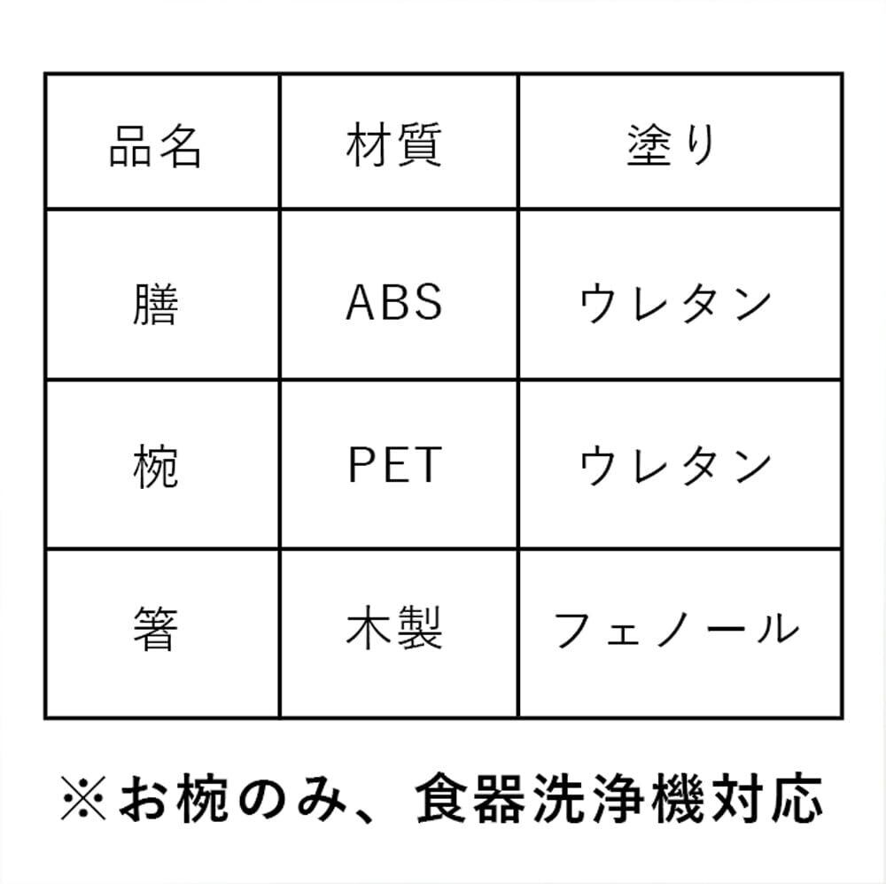 【材質】(膳)ABS樹脂、ウレタン塗り/(椀)PET樹脂、ウレタン塗り