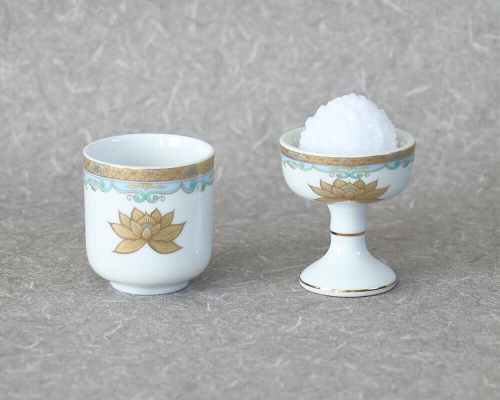 なーむくまちゃん工房 2個セット 中仏器 茶器(1.6寸) 仏具セット 金彩蓮 磁器 仏飯 仏器 湯呑 金彩蓮