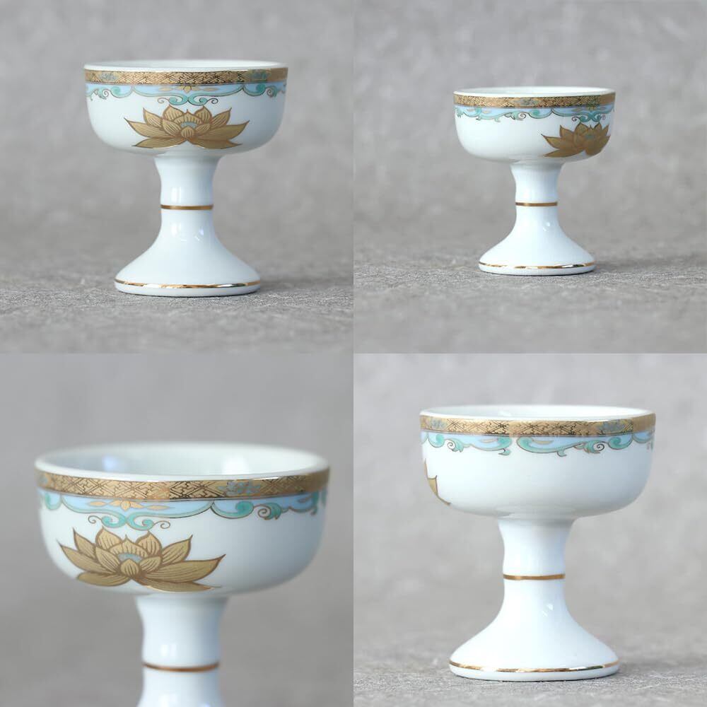 ✨【この『なーむくまちゃん工房 2個セット 中仏器 茶器(1.6寸) 仏具セット 金彩蓮 磁器』は、心を込めた供養のために特別にデザインされた美しい仏具です!】金彩の華やかな蓮模様が、仏壇をより一層引き立て、特別なひとときを演出します。