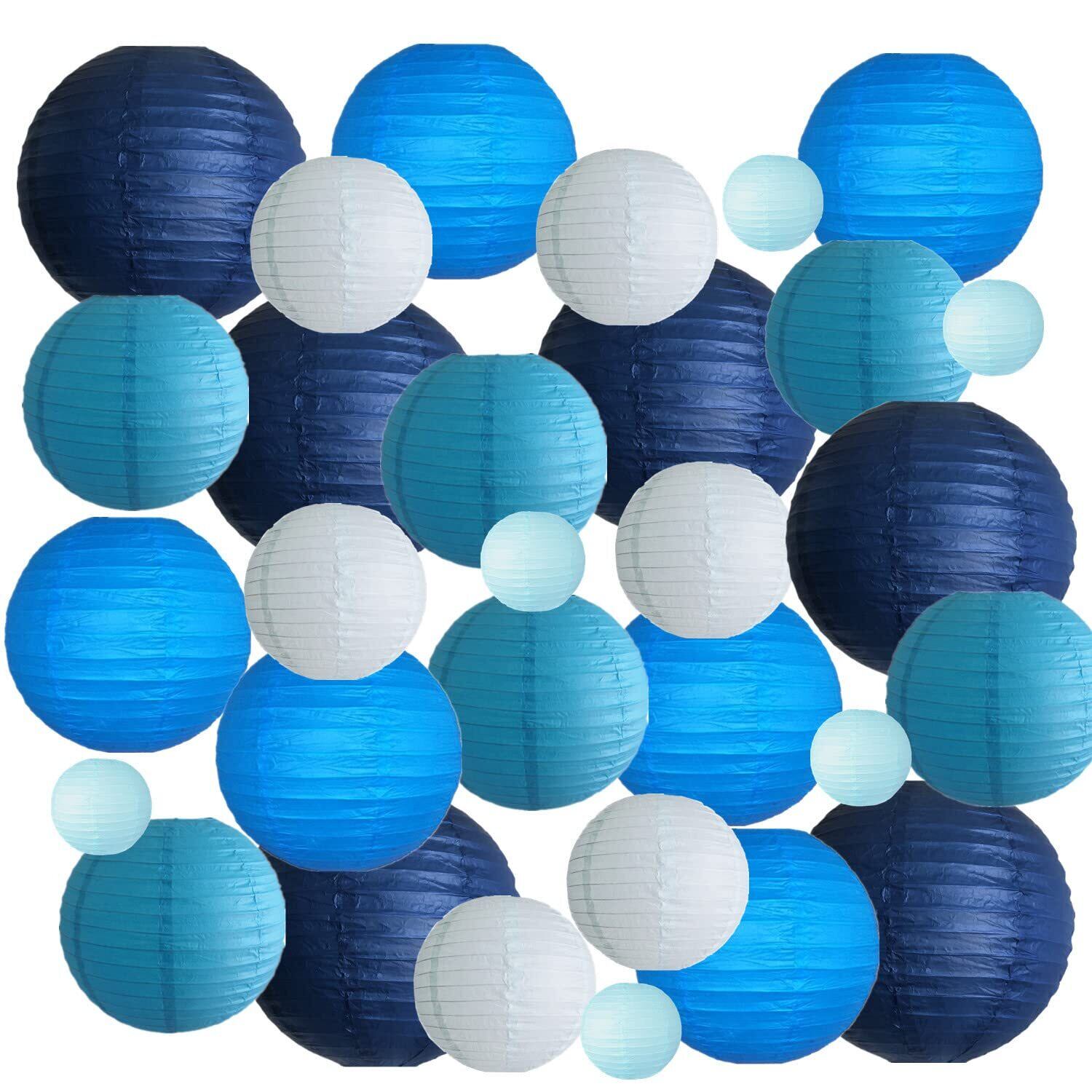 提灯セット 30個 紙提灯 お盆 ちょうちん 5種サイズ各6個 紙 ランタン カラー 提灯 祭り 灯籠 新盆 初盆 お盆飾り パーティー イベント 飾り付け 居酒屋 誕生日 結婚式 開店 (青)