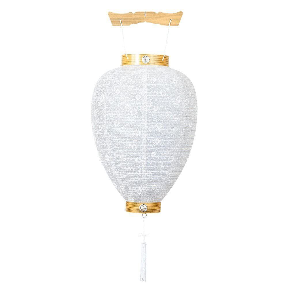 \【◆京仏壇はやし 盆提灯 初盆 新盆用 提灯 柾紋天 (白紋天) 中尺 吊り提灯 (紙製) 高さ40cm 盆ちょうちん 【クロス付セット】◆】/