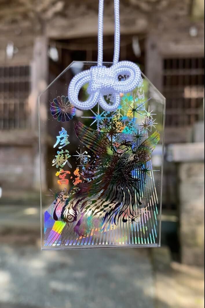 彦嶽宮の神域を守る鳳凰をデザインした透明御守です。 光に当てると、美しく七色に輝きます。 鳳凰はめでたいことが起こる前兆という言い伝えがあり、彦嶽宮(ひこたけぐう)の境内から このお守りを手にする方の幸福の道案内を致します。 鳳(雄)凰(雌)の意味から【良縁】【子孫繁栄】 不老不死の意味から【不老長寿】 神々しい響きから【金運上昇】【運気上昇】 鳳凰が道しるべとなり、様々な悩みから抜け出せるようにお導き致します。 ■取り扱い上のご注意 御守りの表面は箔押しとなります。 硬い素材等で強くこする等されると箔が剥がれる可能性がございますので、ご注意ください。