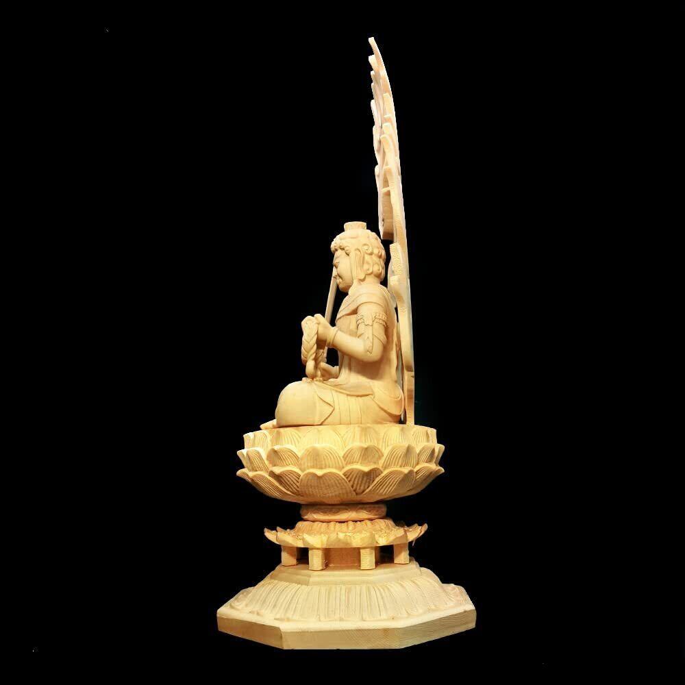 仏像 木彫り 不動明王 仏壇仏像 置物 桧木製 守り本尊 祈る 厄除け 八角台座 火炎光背 (18CM ツゲ)
