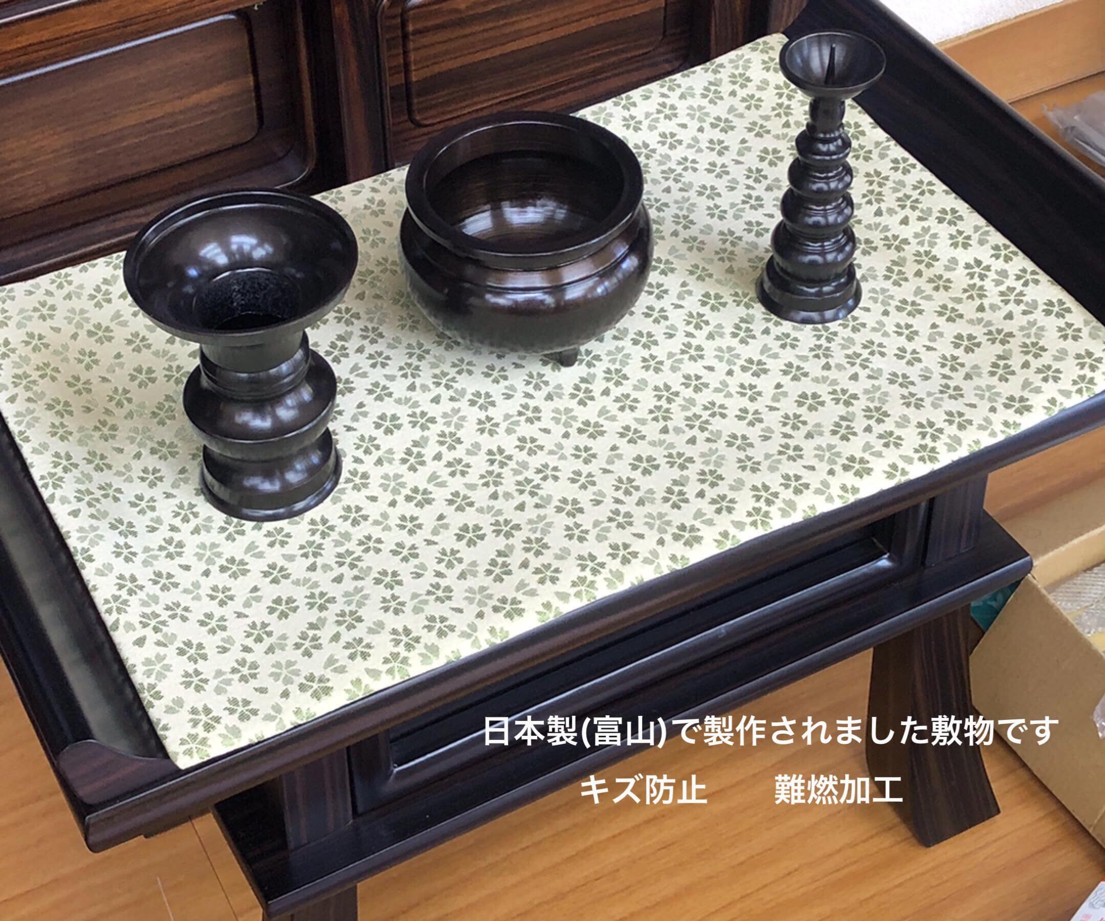経机掛 日和さくら柄 経机マット 防炎 防火 仏壇敷物 京仏壇いせむら 別寸法 お色ございます 仏壇机 経机 仏壇防炎防火マット (緑, 18号)