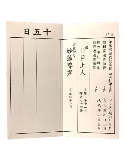 上品な厚みのある布地が表紙のじゃばら式過去帳です。 開くと、創価学会の記念日などが記載されています。 サイズ:縦16.5cm横8cm厚さ約2.5cm